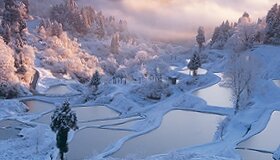 日本でも有数の豪雪地帯、十日町市にある松之山温泉。草津温泉、有馬温泉と肩を並べる「日本三大薬湯」のひとつです。約700年の歴史を誇り、すでに江戸時代には湯治客で賑わったという記録がありますが、ご存じのとおり草津・有馬ほど知名度が無いのは、里山の中の小さな温泉街だから。しかし、訪れてみればわかります!塩分が多くてよく温まる薬効高い泉質、ノスタルジックな里山の風景、そこで採れるお米・野菜・きのこ・魚に山菜といった地のもの。いずれもここにしかない五感に響く自然の恵みに出会えることでしょう。