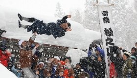 食材供給の目途は立ったものの、現在の「とろろ朝まんま」にたどり着くまでには工夫が必要でした。実は、天然の自然薯はかなり粘りが強く、おろしてそのままごはんにかけてみると、ベストな食感とはいきません。そこで検討を重ねた結果、“大根おろしで伸ばす”という工程をプラスすることになりました。自然薯の風味に大根おろしの辛味がアクセントとなり、粘りもほど良くさらりと食べやすい。かくして、栄養抜群の「とろろ朝まんま」の完成です!薬効高い温泉と、極上の朝ごはん。そして、日本有数の豪雪地帯は、冬も元気です。松之山温泉に伝わる奇祭「むこ投げ・すみ塗り」、この冬で69回を数える「十日町雪まつり」や「雪原カーニバルなかさと」といった雪があるからこそ楽しいイベントが盛りだくさん。ぜひ、里山の冬を体感してみてください。