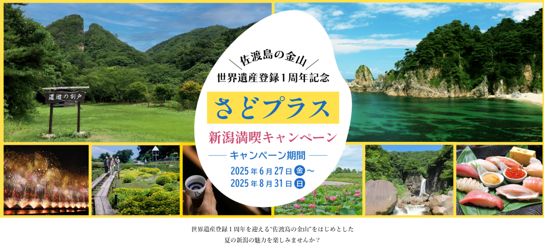 【新潟県からお知らせ】「佐渡島の金山」世界遺産登録1周年記念さどプラス新潟満喫キャンペーンを実施します。